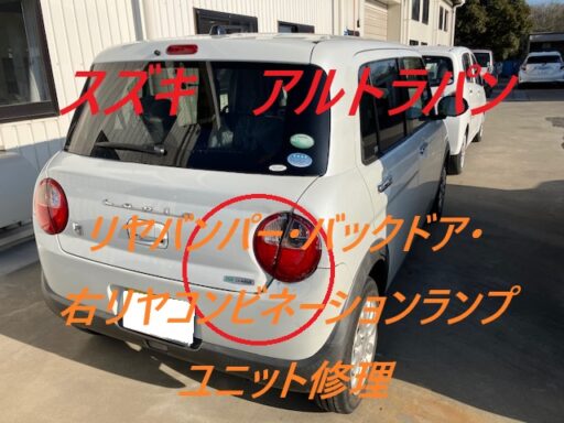 千葉市|千葉市若葉区|佐倉市|スズキ アルトラパン リヤバンパー バックドア 右リヤコンビネーションランプ ユニット 板金 鈑金 修理 キズ へこみ キズ修理 へこみ修理 取替 交換 保険 保険修理