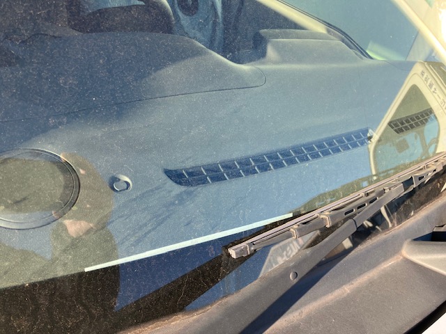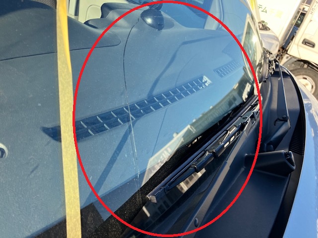 お客様のお話しですと、石が飛んできたそうです。その後、フロントガラスにヒビが伸びてしまったとの事です。(-_-;)