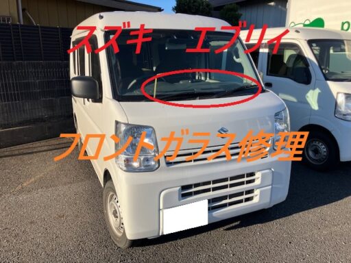 千葉市|千葉市若葉区|佐倉市|スズキ エブリィ フロントガラス 板金 鈑金 修理 キズ へこみ キズ修理 へこみ修理 取替 交換 保険 保険修理