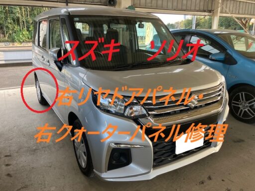 千葉市|千葉市若葉区|佐倉市|スズキ ソリオ 右リヤドアパネル 右クォーターパネル 板金 鈑金 修理 キズ へこみ キズ修理 へこみ修理 取替 交換 保険 保険修理