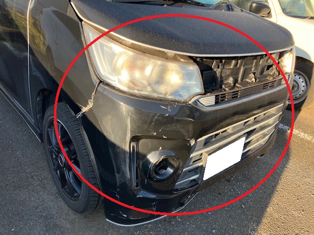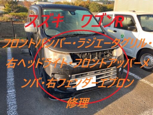千葉市|千葉市若葉区|佐倉市|スズキ ワゴンR スティングレーX フロントバンパー ラジエータグリル 右ヘッドライト 右フロントフェンダーパネル フロントアッパメンバ 右フロントサイドメンバー 板金 鈑金 修理 キズ へこみ キズ修理 へこみ修理 取替 交換 保険 保険修理