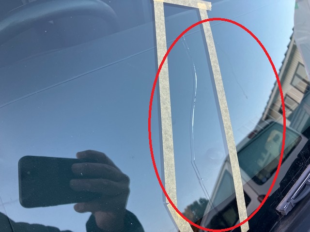 お客様のお話しですと、走行中に何かが飛んできたみたいで、「ピシ」と音がしましたら、フロントガラスにヒビが伸びていたらしいです。