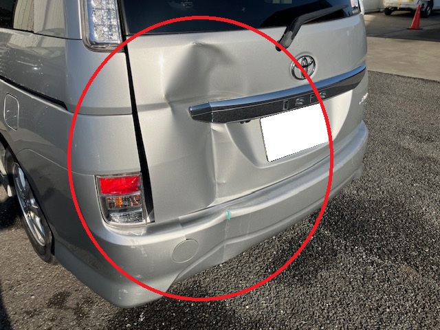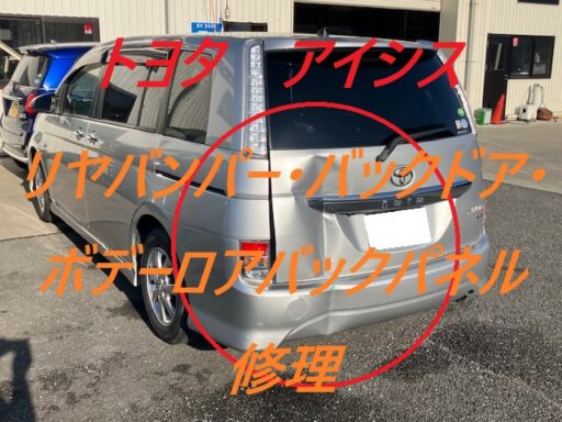千葉市|千葉市若葉区|佐倉市|トヨタ アイシス リヤバンパー バックドアパネル ボデーロワバックパネル 板金 鈑金 修理 キズ へこみ キズ修理 へこみ修理 取替 交換 保険 保険修理