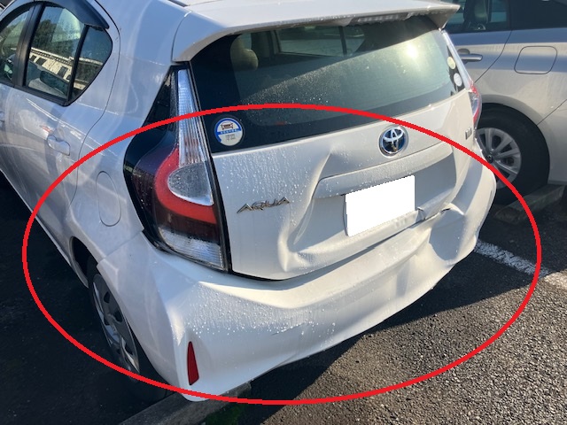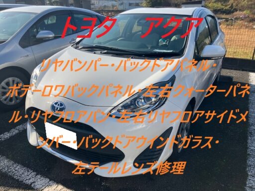 千葉市|千葉市若葉区|佐倉市|トヨタ アクア リヤバンパー バックドアパネル ボデーロワバックパネル 左右クォーターパネル リヤフロアパン 左右リヤフロアサイドメンバー バックドアウインドガラス 左テールレンズ 板金 鈑金 修理 キズ へこみ キズ修理 へこみ修理 取替 交換 保険 保険修理