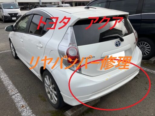 千葉市|千葉市若葉区|佐倉市|トヨタ アクア リヤバンパー 板金 鈑金 修理 キズ へこみ キズ修理 へこみ修理 取替 交換 保険 保険修理