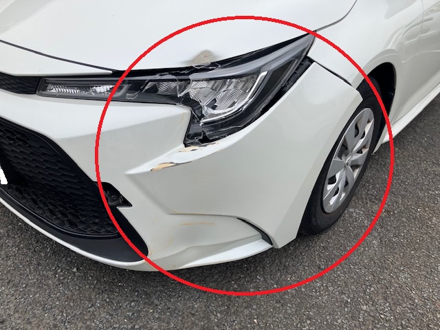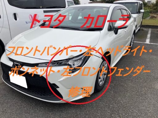 千葉市|千葉市若葉区|佐倉市|トヨタ カローラ フロントバンパー 左ヘッドライト ボンネット 左フロントフェンダー 板金 鈑金 修理 キズ へこみ キズ修理 へこみ修理 取替 交換 保険 保険修理