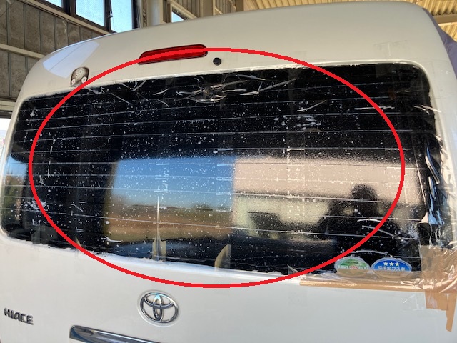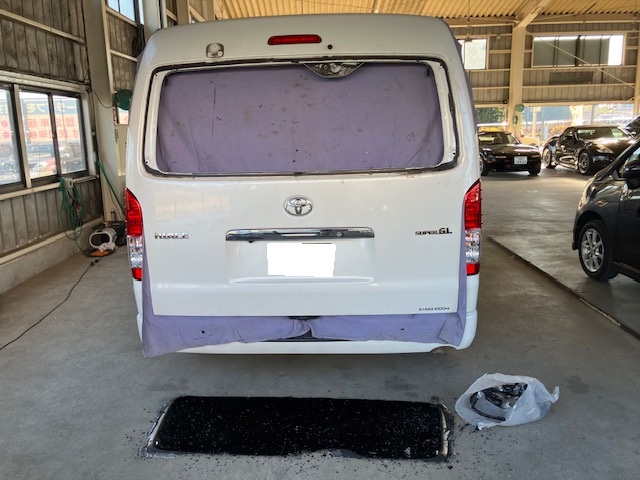 千葉市|千葉市若葉区|佐倉市|トヨタ ハイエース バックドアウインドウガラス 板金 鈑金 修理 キズ へこみ キズ修理 へこみ修理 取替 交換 保険 保険修理