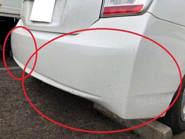 お客様のお話しですと、バックしていてリヤバンパーにキズがついてしまったみたいです。確認しますと全体的にキズなどが出来てしまっております。(-_-;)
