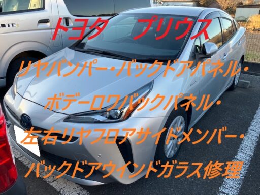 千葉市|千葉市若葉区|佐倉市|トヨタ プリウス リヤバンパー バックドアパネル ボデーロワバックパネル 左右リヤフロアサイドメンバー バックドアウインドガラス 板金 鈑金 修理 キズ へこみ キズ修理 へこみ修理 取替 交換 保険 保険修理