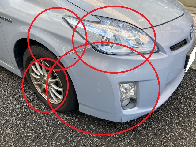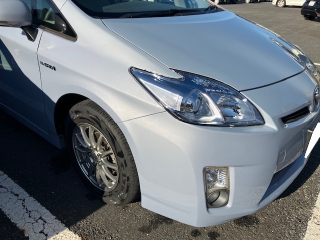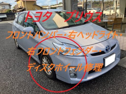 千葉市|千葉市若葉区|佐倉市|トヨタ プリウス フロントバンパー 右ヘッドライト 右フロントフェンダー ディスクホイール 板金 鈑金 修理 キズ へこみ キズ修理 へこみ修理 取替 交換 保険 保険修理