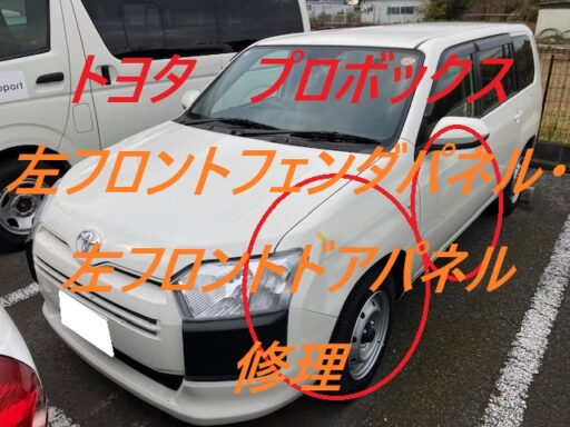 千葉市|千葉市若葉区|佐倉市|トヨタ プロボックス 左フロントフェンダーパネル 左フロントドアパネル 板金 鈑金 修理 キズ へこみ キズ修理 へこみ修理 取替 交換 保険 保険修理