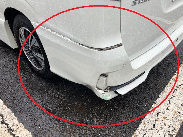 お客様のお話しですと、出先の駐車場でバックしている時にぶつかってしまったそうです。何気なく運転していて柱を見落としたそうです。(-_-;)