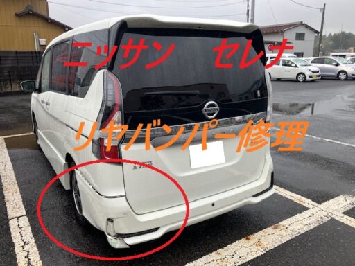 千葉市|千葉市若葉区|佐倉市|ニッサン セレナ リヤバンパー 板金 鈑金 修理 キズ へこみ キズ修理 へこみ修理 取替 交換 保険 保険修理