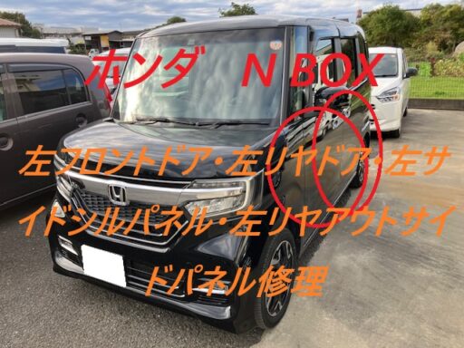 千葉市|千葉市若葉区|佐倉市|ホンダ N BOX 左フロントドアパネル 左リヤドアパネル 左サイドシルパネル 左リヤアウトサイドパネル 板金 鈑金 修理 キズ へこみ キズ修理 へこみ修理 取替 交換 保険 保険修理