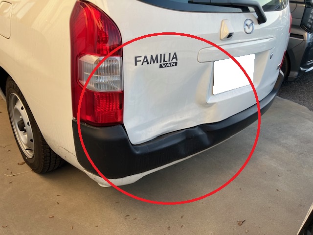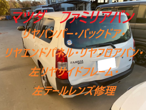 千葉市|千葉市若葉区|佐倉市|マツダ ファミリアバン リヤバンパー バックドア リヤバックパネル 左リヤサイドフレーム 左テールレンズ 板金 鈑金 修理 キズ へこみ キズ修理 へこみ修理 取替 交換 保険 保険修理