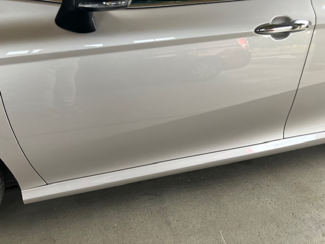左フロントドア・左ロッカパネルモールディング修理になります。