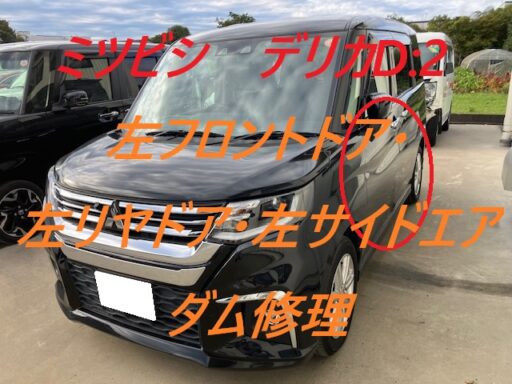 千葉市|千葉市若葉区|佐倉市|ミツビシ デリカD:2 左フロントドア 左リヤドア 左サイドエアダム 板金 鈑金 修理 キズ へこみ キズ修理 へこみ修理 取替 交換 保険 保険修理