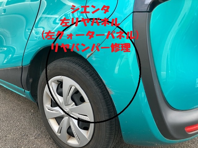 千葉市|千葉市若葉区|佐倉市|トヨタ シエンタ リヤパネル(クォーターパネル) リヤバンパー 板金 鈑金 修理 キズ へこみ キズ修理 へこみ修理