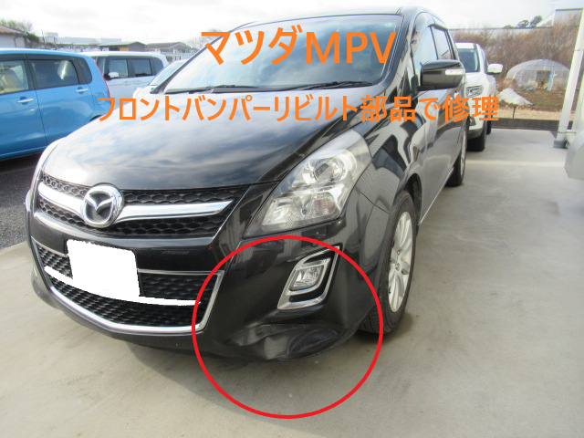 千葉市若葉区|佐倉市|MPV(マツダ)のキズ・へこみ直し(フロントバンパー交換リビルト品・中古品)