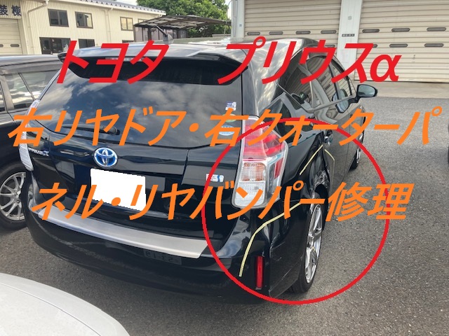 千葉市|千葉市若葉区|佐倉市|トヨタ プリウスα 右リヤドア リヤバンパー 右クォーターパネル 板金 鈑金 修理 キズ へこみ キズ修理 へこみ修理 取替 交換 保険 保険修理